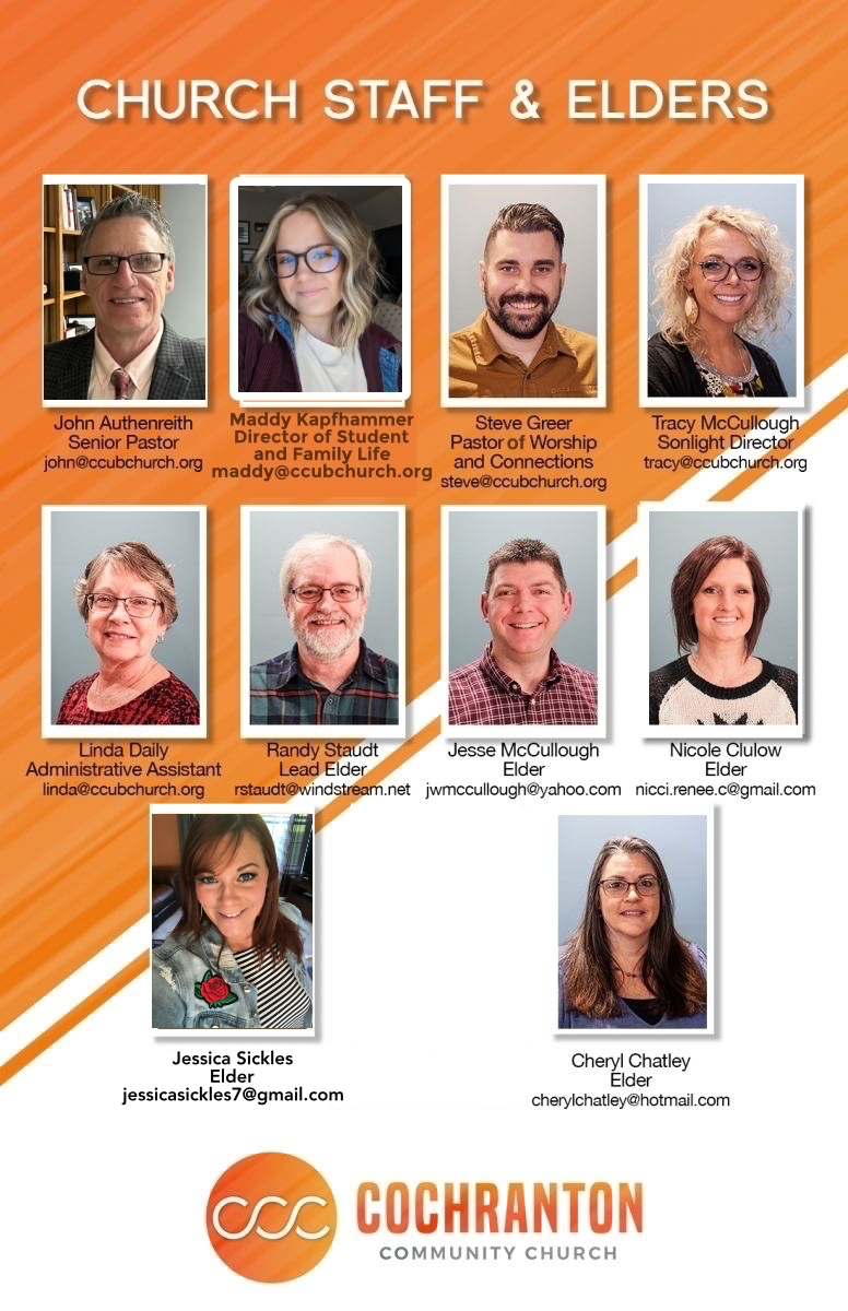 At Cochranton Community Church, our mission is to be a church that is continually "Sharing the love of Jesus so that our families, our community, the next generation, and the world will know Him as Savior."